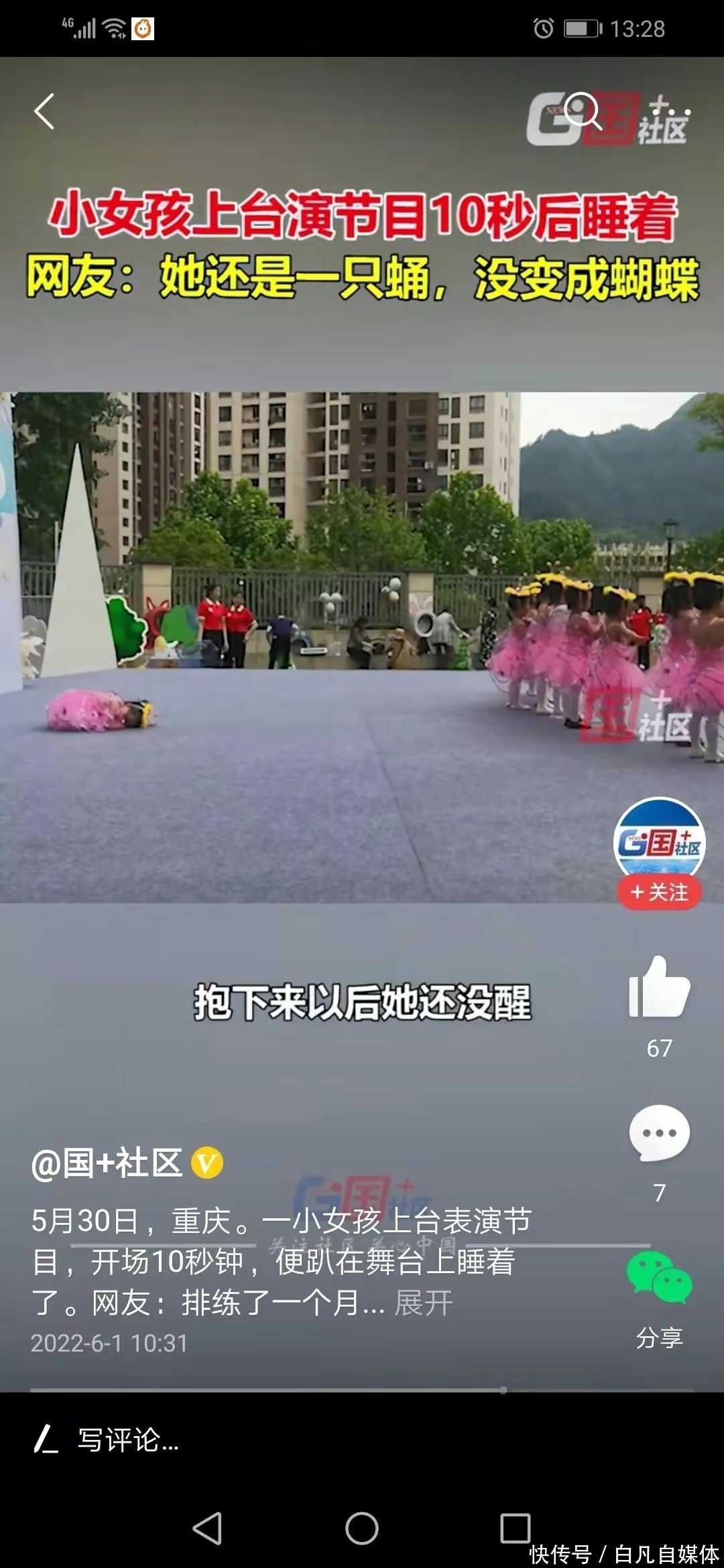 小女孩上台演节目10秒后睡着#有时候,顺其自然的格局甚至比刻意安排的还要有趣,真实感很强。重庆某幼儿园在六一儿童节表演了一个节目。舞台上的一个萌娃刚在舞台上表演一会儿,就不知不觉的睡着了,且台前的其他小伙伴们还在兴奋地表演着。