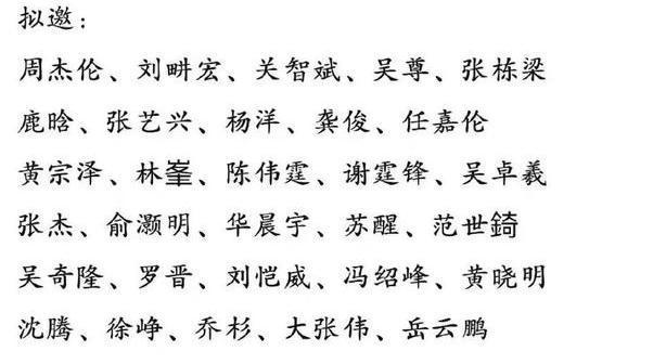 正式招募评审了,拟邀名单也流了出来,但这个名单实在是太离谱了,1/3都是顶流、一、二线明星,比如周杰伦、鹿晗、张艺兴、陈伟霆、杨洋、沈腾、张杰、黄晓明等。