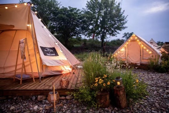 近年因为条件的限制,大众的生活足迹缩短,外出旅行的范围缩小。据中国旅游研究院发布的《2021 年旅游经济运行分析与 2022 年发展预测》报告,2021 年国庆黄金周,中国游客平均出游半径为 141 公里。虽然不能远行,但只要对生活保持热爱,在身边也能发现"诗与远方"。节目的概念海报正与之契合,在距离城市中心 141 公里内的露营地,帐篷和房车创造了旅行的另一种形式,让人从高楼林立的城市出逃,拥抱自然,感受美好。