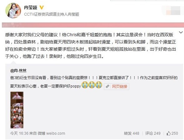 这段画面一播出立刻引发网友热议,有些网友认为一个4周岁的孩子应该有性别意识了,但是轩轩还在偷看女孩子洗澡,明显是家庭教育中缺乏了性别意识的意引导。轩轩妈妈也发微博解释,认为儿子是“看到夏天姐姐孤独地站在里面,出于好奇也出于关心,跑了过去。”