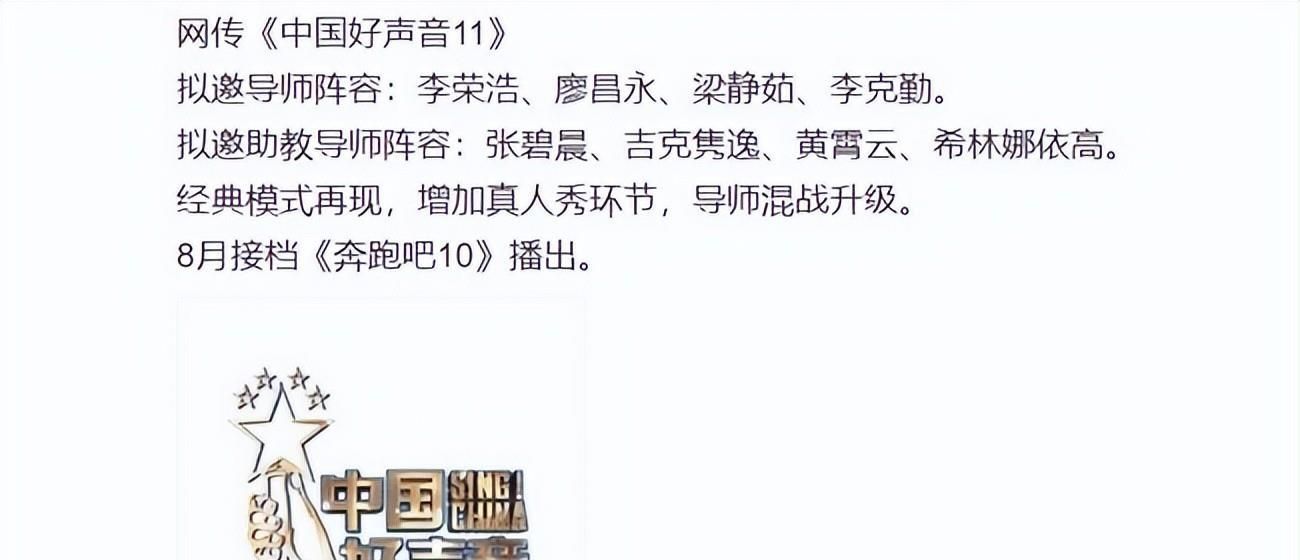 12日《好声音2022》的导师人选曝出了新瓜,跟上一季一样拟邀名单上依旧是四大四小八个人。