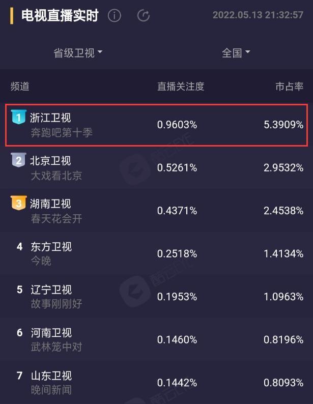 也正是因为周深的活跃表现,令首期节目的收视率也是出奇的高,从实时收视率数据中可以看到,浙江卫视《奔跑吧10》收视率依旧位列同时段卫视收视率第一位,而且是遥遥领先,基本都是其他卫视的两倍之多,足以看出《奔跑吧》还是非常受欢迎的,