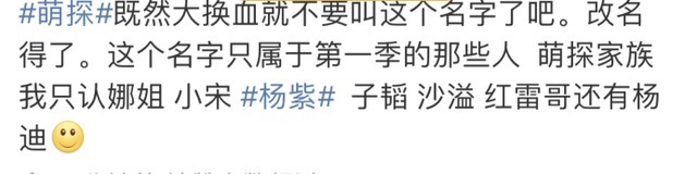 在很多观众看来,《萌探1》能成功全靠杨紫、孙红雷等人,如今常驻嘉宾大换血,根本就是另一档节目了,节目组干脆换个名字得了,消息一出便提前遭到了抵制。
