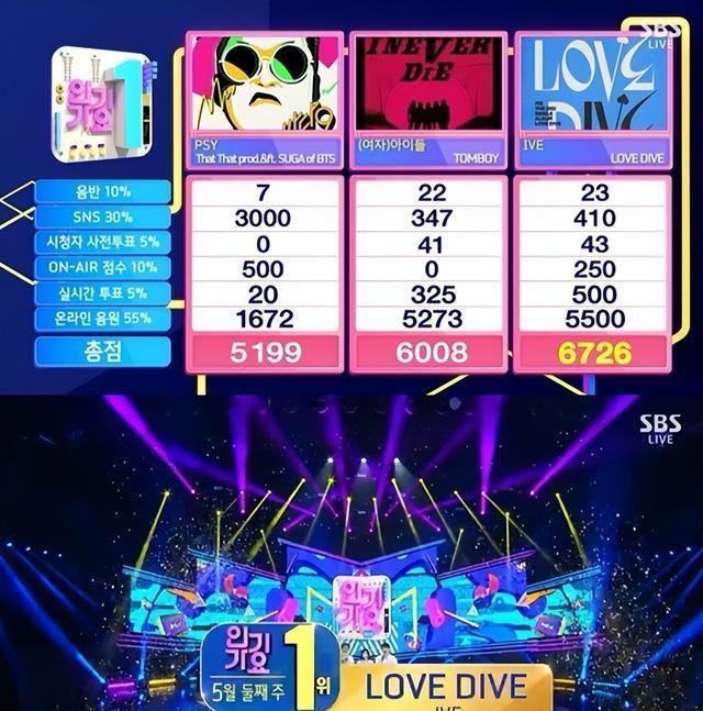 5月8日,韩国第四代女团领军团体IVE以新歌《LOVE DIVE》,拿下打歌节目《人气歌谣》一位,不仅夺下了她们二辑的第八座打歌节目冠军,还再次成功解锁了五台冠军歌曲的成就!