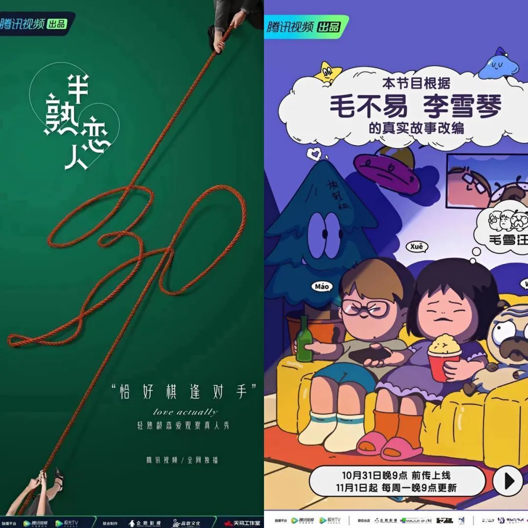 腾讯这边,S级综艺《半熟恋人》,全程裸播。毛不易李雪琴做主咖的年番综艺《毛雪汪》,播出13期,赞助依旧为0。