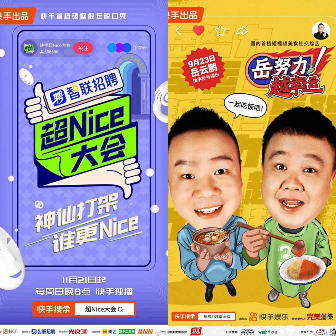 快手这边,与笑果合作的《超nice大会》,是面向老铁的脱口秀,智联招聘、瓜子二手车、美团、货拉拉等互联网企业是主要赞助商。