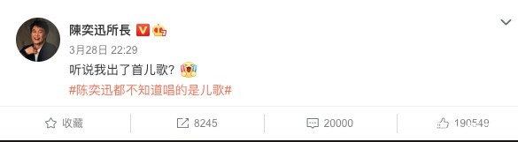 而该调侃居然还得到了陈奕迅本尊的回应,他直接在社交平台上发文称「听说我出了首儿歌?」用疑问句的发文也是太好笑了!