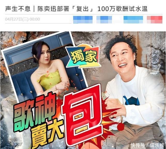 不过,也有网友表示,可能是因为陈奕迅太久没有工开了,现在见到一档好节目,又有钱赚的同时,还能宣扬自己喜爱的港乐,所以就自降片酬加入了。毕竟,去年陈奕迅还曾在直播中哭穷,说银行账号只剩3000万,已经太久没有见进有钱进来了。他表示很慌。