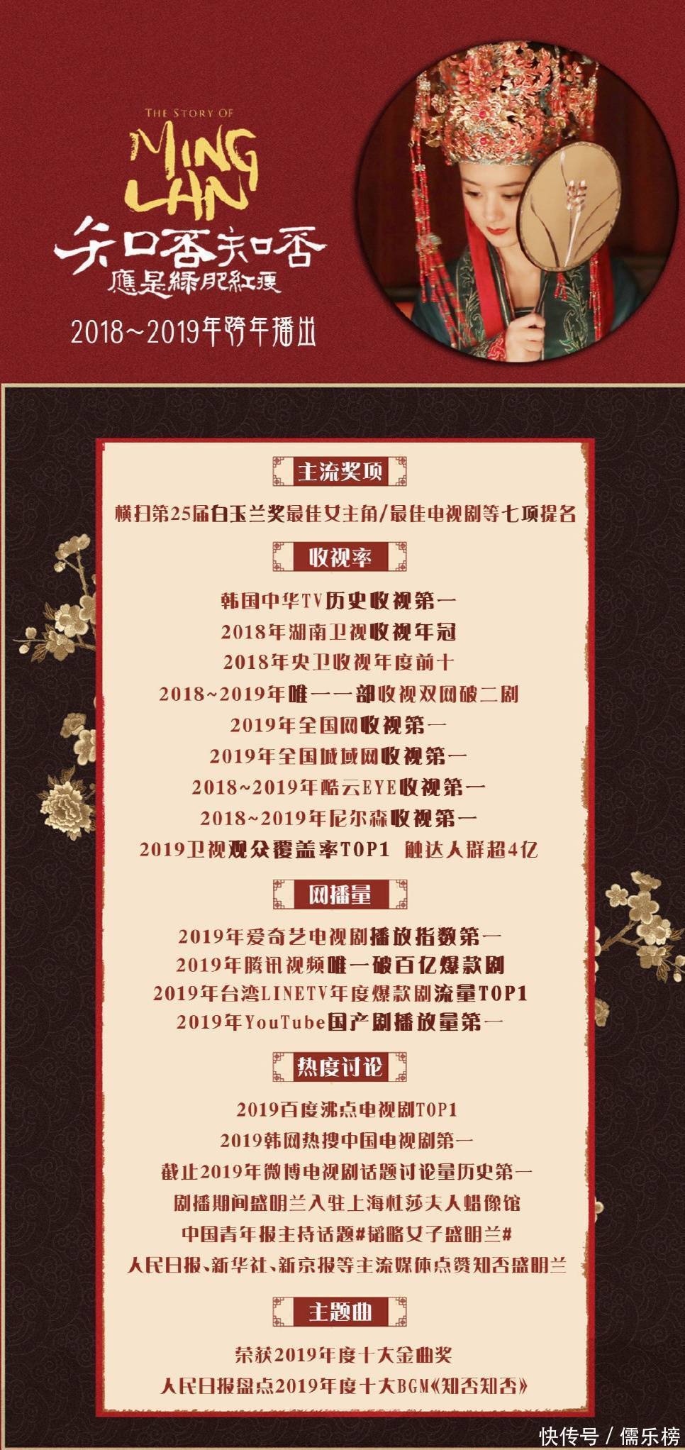 而2018年播出的《知否知否应是绿肥红瘦》,以302亿的网播量排在第二,该剧当年可以说是横扫了各大奖项,不仅在白玉兰奖上获得了七项提名,而且还是当年的网播收视年冠。而更有意思的时候,该剧播出的时候,刚好女主赵丽颖生下了宝宝,当时剧组还用「知否知否应是一家三口」来营销话题。