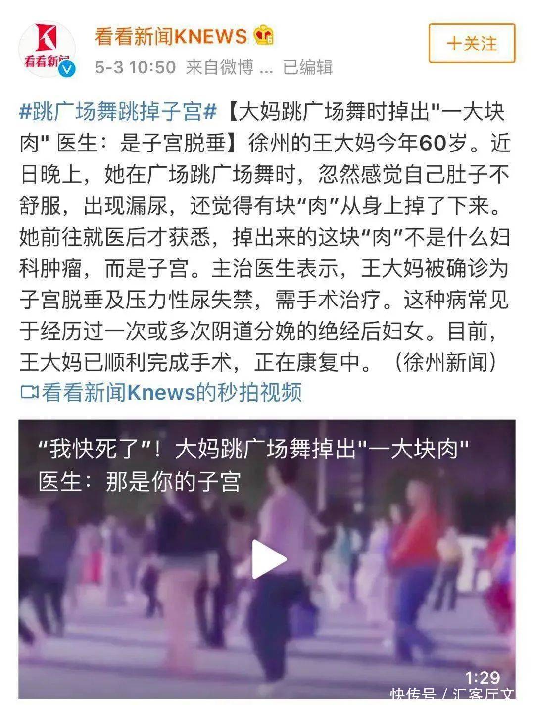 一位60岁的大妈在广场上跳舞时,突然感觉肚子不舒服,漏尿,还觉得有块“肉”从身上掉了下来。