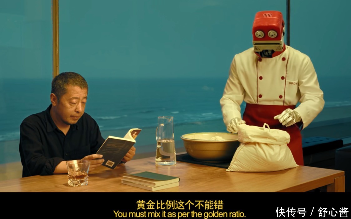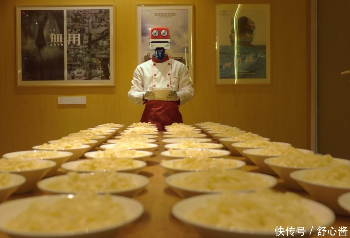 一个是贾樟柯的机器人给他和面,坚持“数据黄金比例”,两位一个倒水一个倒粉,结果搞出一桌子数百碗面条。