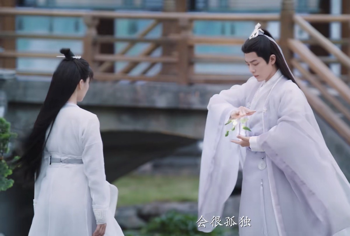预告片中肖战饰演的时影还未亮相就已经先说出了他的誓言,他立誓此生不作乐,不娶妻,也不会动尘心,但朱颜的出现让他孤独的生活里有了一道光,曾经立下的誓言眼看着就要打破时,时影因为了保护朱颜选择断绝了两人的师徒关系。
