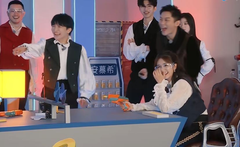 这期节目有一个飞椅的游戏,坐在飞椅上的人是否会被弹飞,看的就是前面和他一组的人游戏能否获胜。