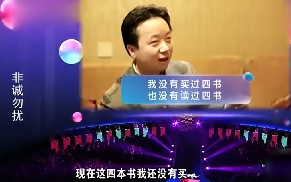 因为在VCR里,男嘉宾表示,真正的中国人只有千分之二,要成为真正的中国人,就应该认真地读一读四书。
