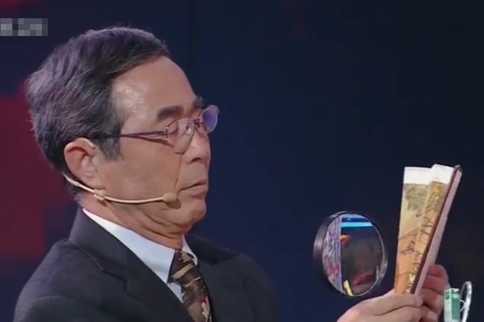 就在全场所有人都没有一脸震惊时,他继续说道,他以前看过一把扇子,全是文字,合上以后是一把空白的扇子。