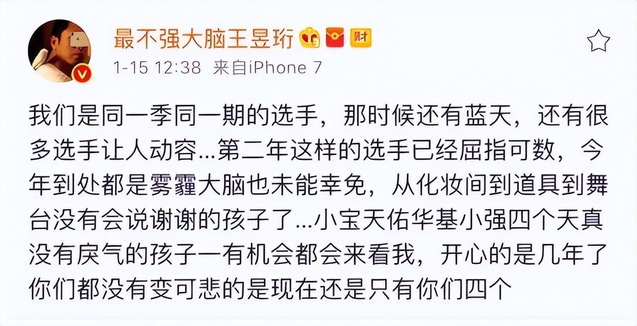 从2015年到2016年间,王昱珩在节目中一直无往不胜,如果没有后来的那件事,也许他还会多创造一些神话。
