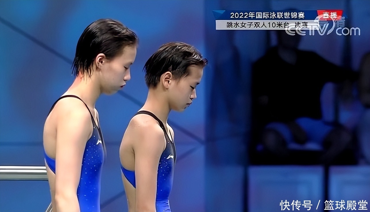 在第一个动作,陈芋汐和全红婵是201B。这个动作难度并不是很大,虽然她们动作同步可能有点瑕疵,不过其他方面都是完美。最终陈芋汐和全红婵获得了55.2分。
