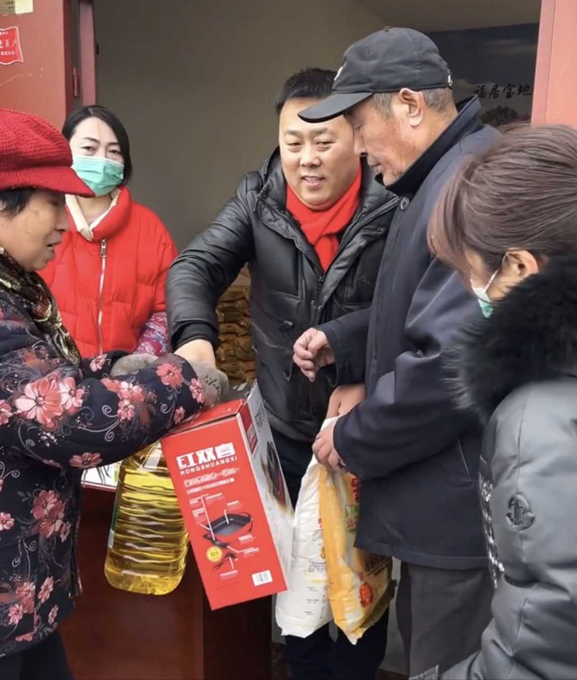 刘大成夫妻给老乡送年货